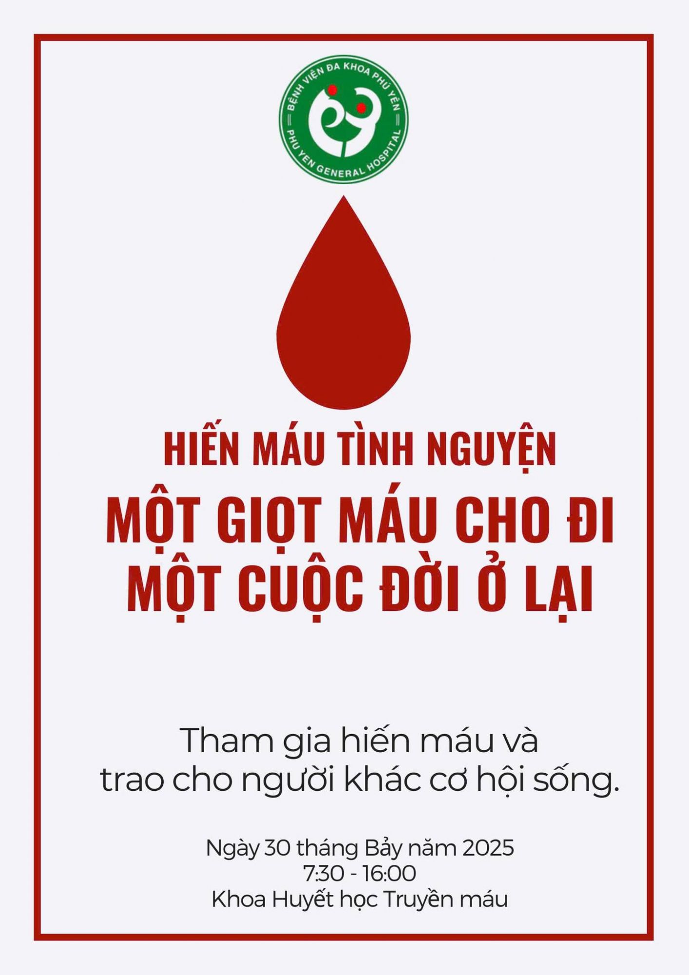 Nhằm lan toả tinh thần tương thân tương ái và sẻ chia vì cộng đồng, Công đoàn cơ sở Bệnh viện Đa khoa Phú Yên phát động đợt hiến máu tình nguyện đến toàn thể đoàn viên công đoàn, viên chức và người lao động và các tình nguyện viên có đủ sức khoẻ tại Bệnh viện.