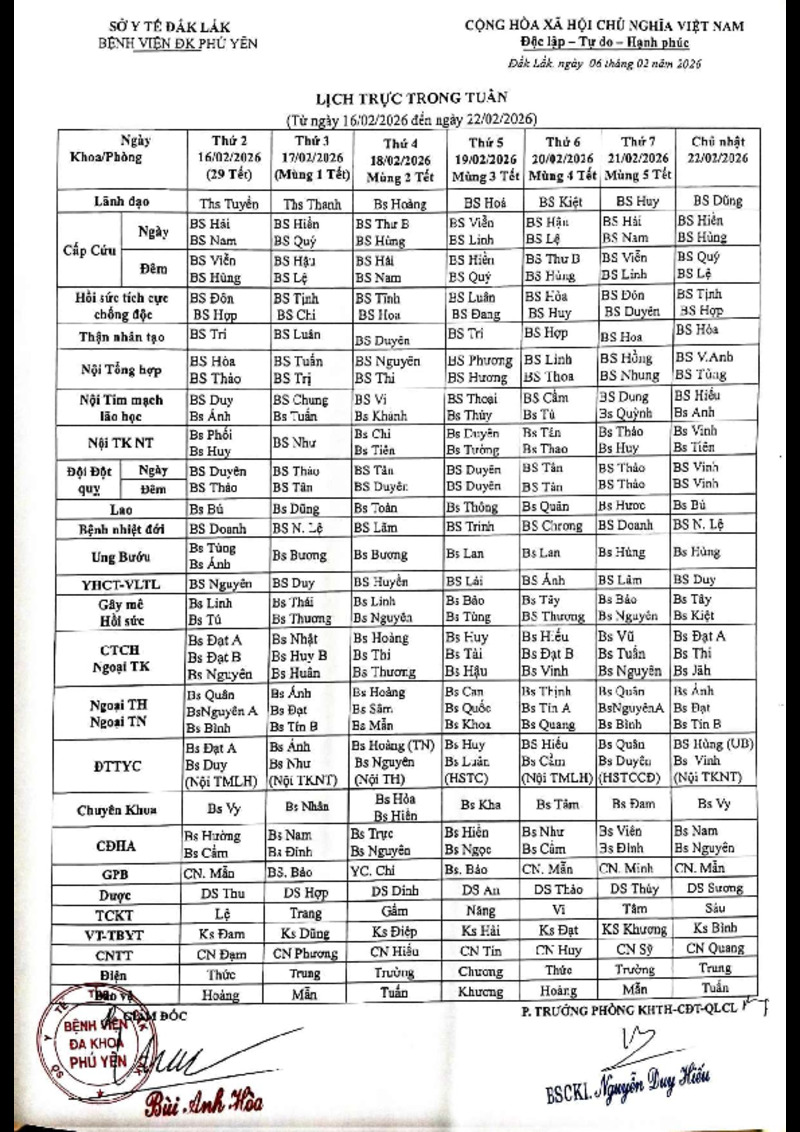 | Tiêu đề văn bản | Lịch trực trong tuần (từ ngày 16/02/2026 đến ngày 22/02/2026 ) | ||
