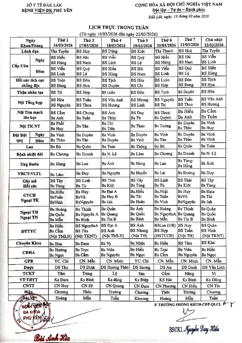 | Tiêu đề văn bản | Lịch trực trong tuần (từ ngày 16/03/2026 đến ngày 22/03/2026) | ||