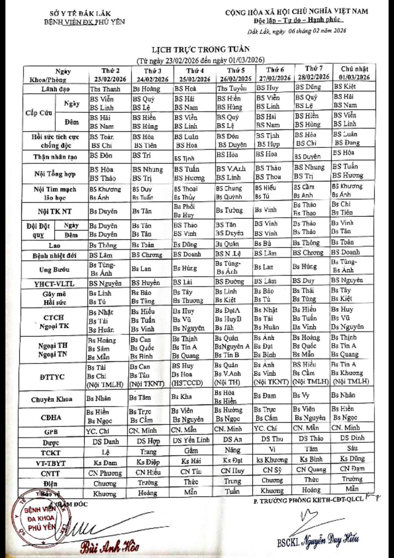 | Tiêu đề văn bản | Lịch trực trong tuần (từ ngày 23/02/2026 đến ngày 01/03/2026 ) | ||