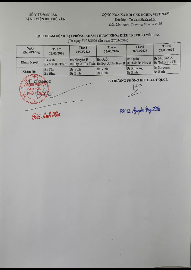 | Tiêu đề văn bản | Lịch duyệt thông qua Phẫu thuật - Thủ thuật (từ ngày 23/03/2026 đến ngày 27/03/2026) | ||