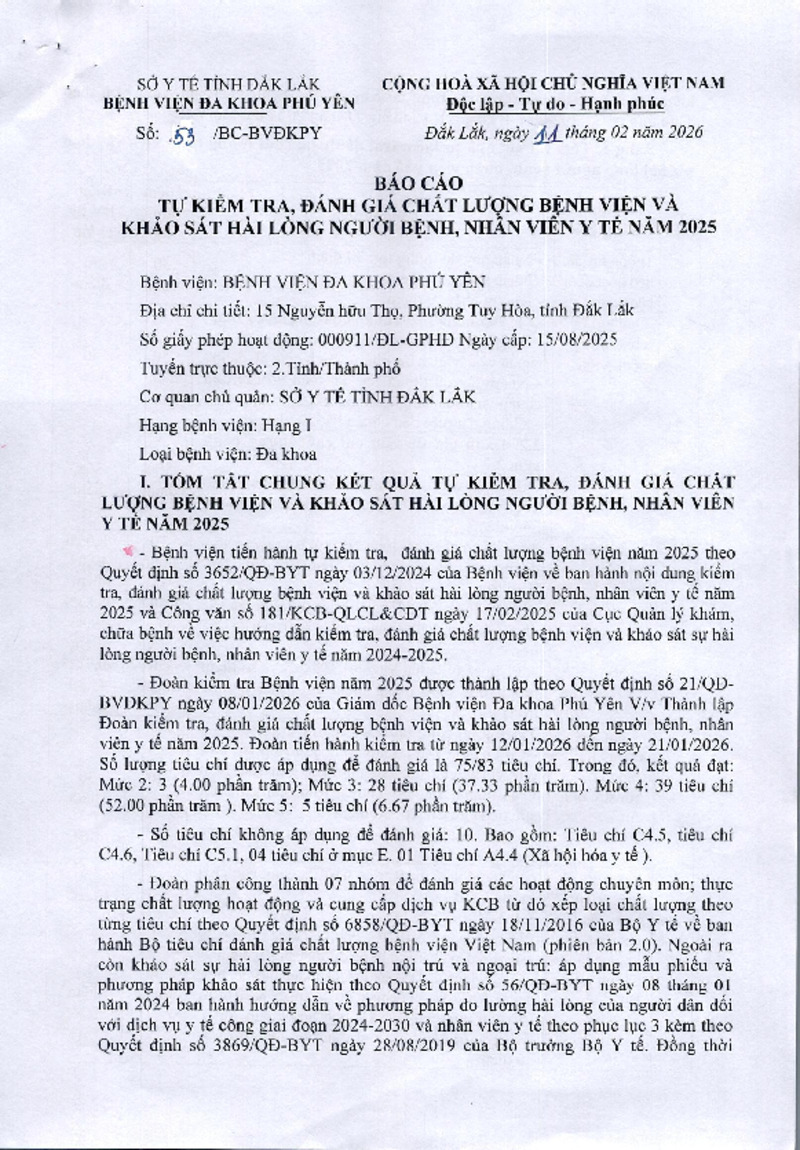 | Số hiệu | 53/BC-BVĐKPY | Cơ quan ban hành | |