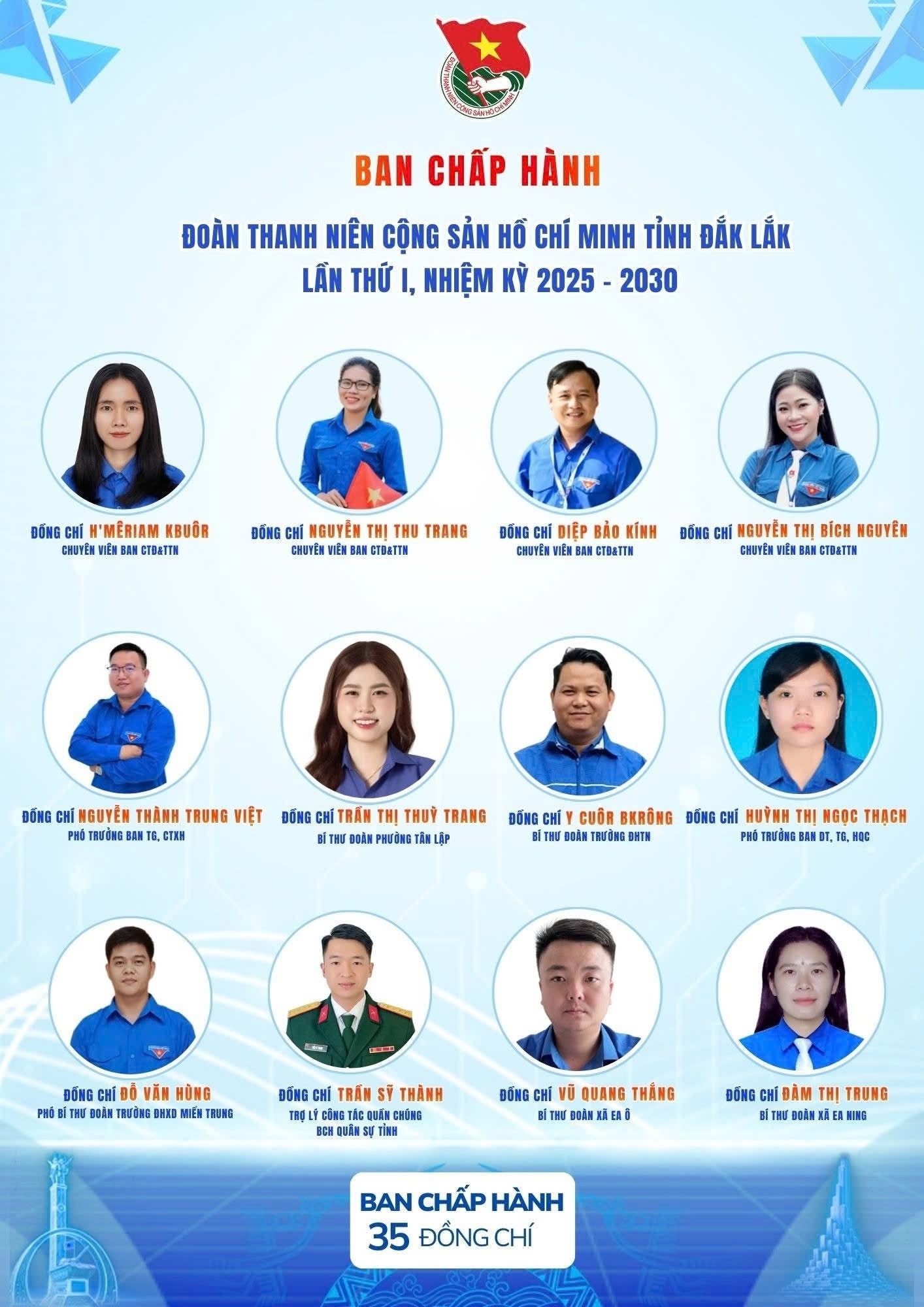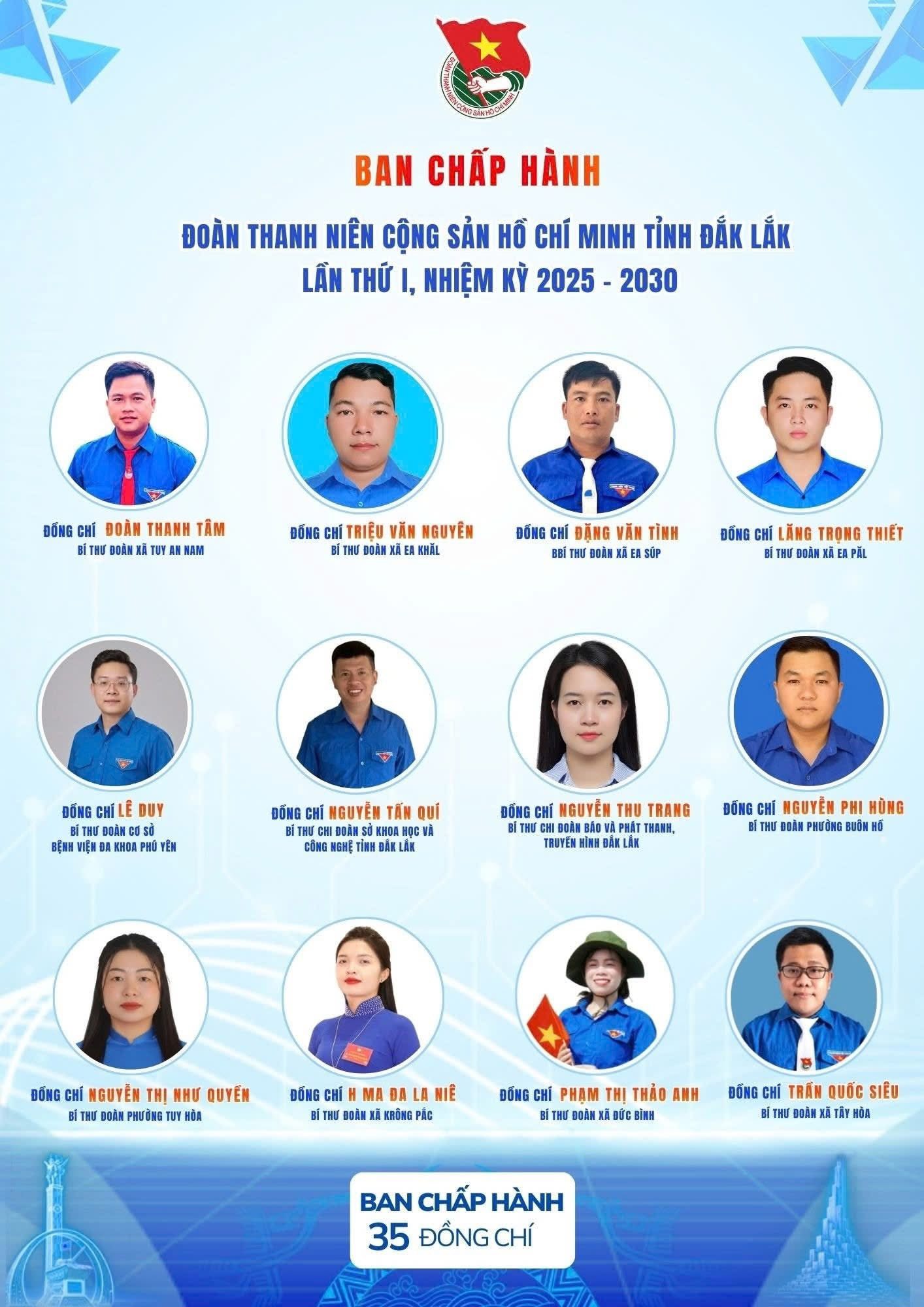 Đại hội đã tín nhiệm bầu ra Ban Chấp hành gồm 35 đồng chí, đại diện cho ý chí – trí tuệ – khát vọng cống hiến của tuổi trẻ tỉnh nhà.